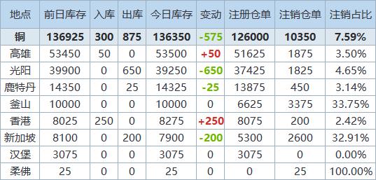 以下为LME铜库存在全球主要仓库的分布变动情况:(单位 吨)