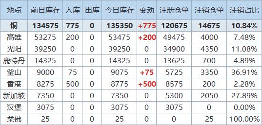 以下为LME铜库存在全球主要仓库的分布变动情况:(单位 吨)