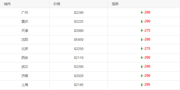 今日(9月29日)国内电解铜市场延续下行态势,主要城市价格普遍下跌,整体呈现“普跌伴随区域分化”的特征。数据显示,除沈阳外,多数城市价格集中在82090-82240元/吨区间,跌幅介于275-295元/吨;沈阳因区域供需失衡,价格显著高于其他城市,成为当日市场焦点。