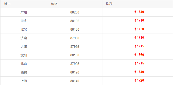 从区域表现看,华南、华东因制造业需求旺盛,价格始终处于高位——广州(88200元/吨)作为华南制造业核心城市,受益于家电、电子行业的大量采购,价格稳居第一;上海(88140元/吨)则凭借完善的产业链配套,成为华东地区价格标杆。东北地区的沈阳(88100元/吨)虽价格略低于华南,但涨幅达到1760元/吨,成为今日涨幅最大的城市,主要因当地部分铜厂检修导致供应相对紧张。华中、西南、西北区域价格处于中等水平:武汉(88180元/吨)依托基建项目需求支撑,重庆(88195元/吨)受工业复苏滞后影响涨幅较小,西安(88120元/吨)则因新能源产业(如光伏、电池)的铜需求增长,价格保持稳定。华北地区的北京、天津(均为87995元/吨)因库存相对充足,价格最低,涨幅也处于中下游水平(1715元/吨)。