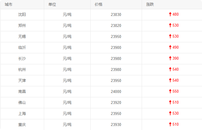 复制链接3月3日,国内电解铝现货市场价格大幅上涨,各地区报价均有不同程度抬升,市场交投情绪活跃。今日国内电解铝现货价格集中在23820-24000元/吨,南昌地区报价最高,达到24000元/吨,郑州地区报价相对较低,为23820元/吨;各地区涨幅普遍在390-550元/吨区间,南昌地区涨幅最大,达550元/吨,长沙地区涨幅相对较小,为390元/吨。