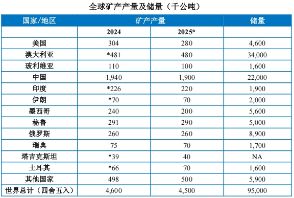 产量动态变化。2025年全球铅矿产量预计呈现明显的结构性变化。受资源枯竭和矿山关闭等因素影响,美国、墨西哥和玻利维亚等国明显减产,成为整体产量下滑的主因;土耳其、塔吉克斯坦等国则实现小幅增长,部分对冲了全球减量。这种变化加剧了全球铅供应的区域性不平衡。